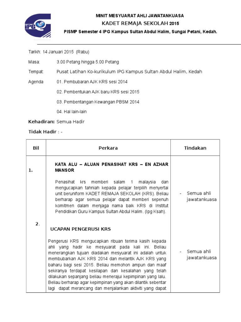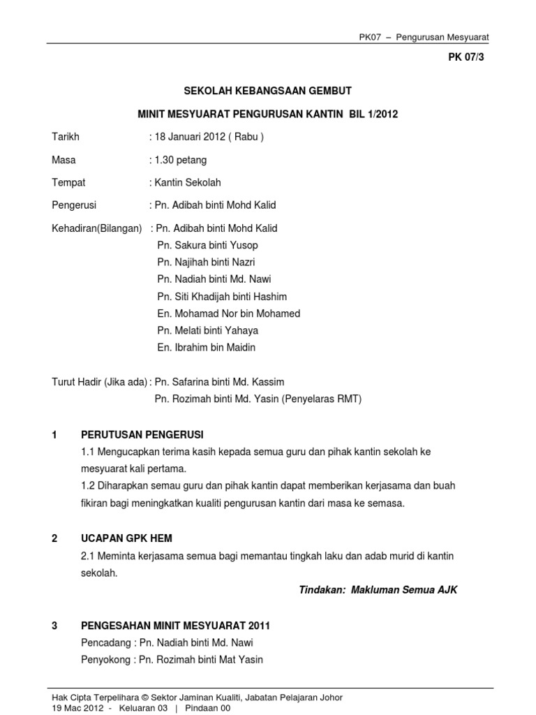 Contoh minit mesyuarat aspirasi kerja contoh perlu sebagai dinamakan ini agung abdul agung merupakan ulu bomba nama jabatan kelab yang minit. Berikut kami kongsikan beberapa bahan dan minit mesyuarat kurikulum di peringkat sekolah sebagai panduan bersama. Contoh penulisan minit mesyuarat untuk panitia bahasa melayu. Untuk memastikan perjalan pengurusan sekolah berjalan dengan lancar, mesyuarat perlu dilakukan. Fail meja spbt by rina abdullah 17696 views.
