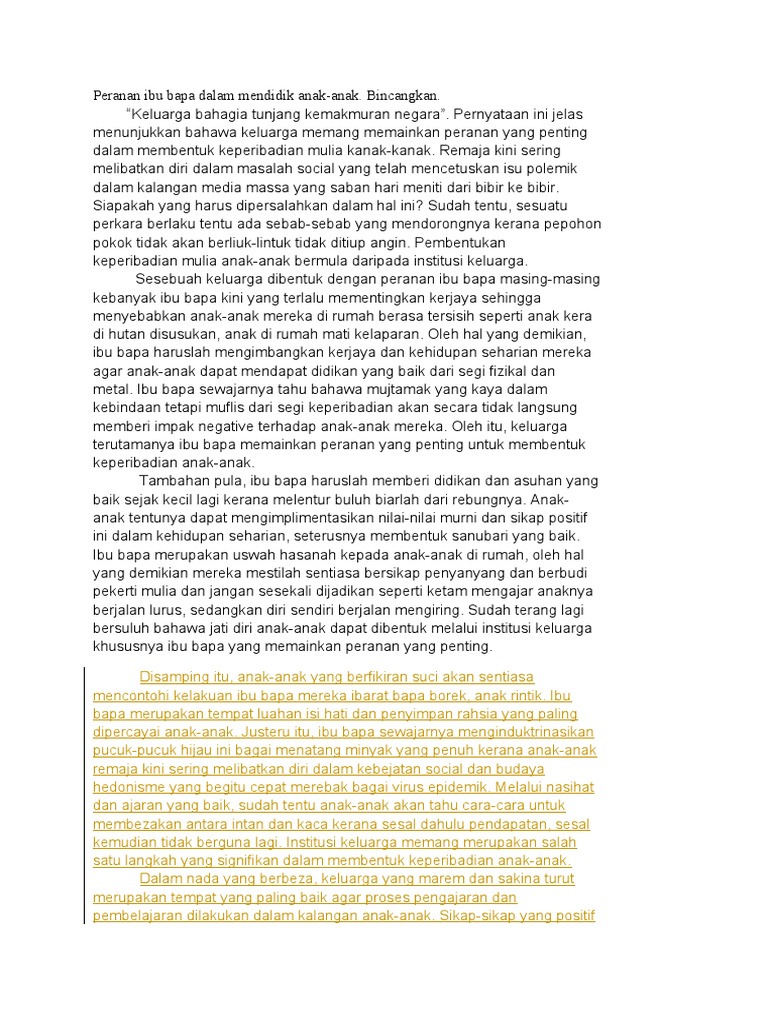 Salah satu peranan orang tua dalam mendidik anak menurut. Nah, apabila situasi ini berlaku, lain yang diharap lain yang menjadi, bak kat pepatah, yang dikejar tidak dapat yang diikendong berciciran. Peranan ibu bapa untuk mengawal penggunaan telefon pintar dalam anak mereka ialah ibu bapa mestilah mengajar anak mereka cara betul menggunakan telefon pintar. Peranan ibu bapa membesarkan anak bermula sebaik sahaja si kecil dilahirkan. Read peranan ibu bapa dalam mengurangkan gejala sosial from the story contoh karangan bm by christabeljuman with 9,384 reads.dalam meniti arus kemodenan ini, p. Artikel ini mengupas peranan ibu bapa terhadapnya. Download peranan ibu bapa dalam mendidik anak. Peranan ibu bapa dalam mendidik remaja 3. Peranan ibu bapa dalam membentuk keperibadian dan sahsiah diri seseorang anak itu adalah amat penting. Ibu bapa mestilah mengajar dan mendidik anak mereka sejak kecil kerana melentur buluh biarlah daripada rebungnya. Mungkin ada di antara mereka tidak menunjukkan kebimbangan tetapi ia dapat dilihat daripada segi perubahan sikap dan tingkah laku mereka. Sebagai rakyat malaysia, kita seharusnya bersyukur dan menggunakan manfaat yang ada kerana akses kepada perkhidmatan. Team wom.my — july 9, 2016.